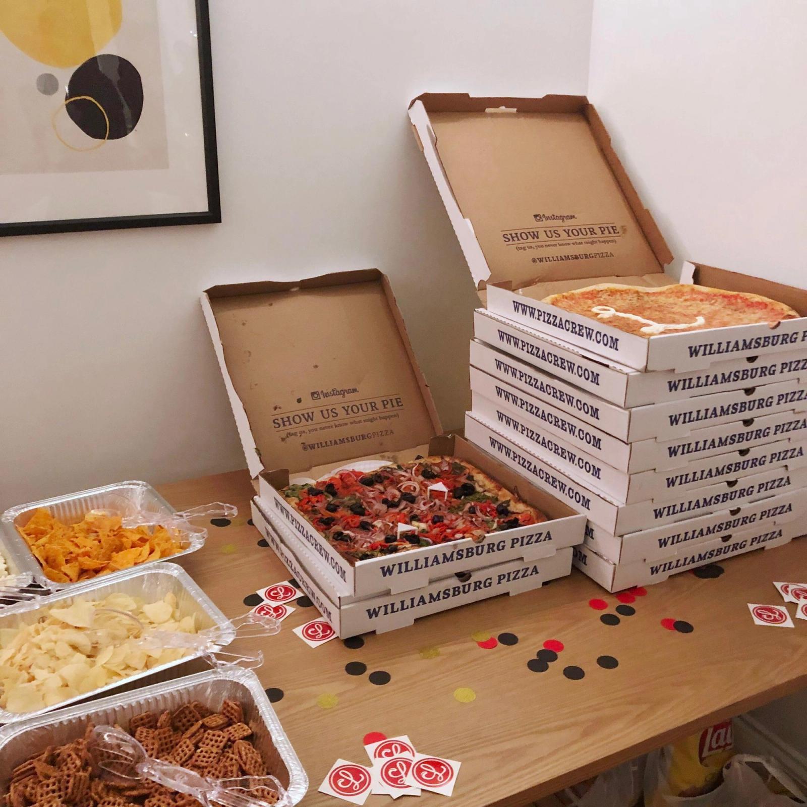 We had plenty of good pizza (c/o Williamsburg Pizza 🍕), good drinks (c/o of Cristhian and Eli from The NoMad Bar 🍹), and good snacks (c/o the grocery store around the corner 🥨). Between catching up with our friends, playing board games—including a secret prototype game, shhhh—and taking selfies in the makeshift photo booth, there were lots of great memories to be made.