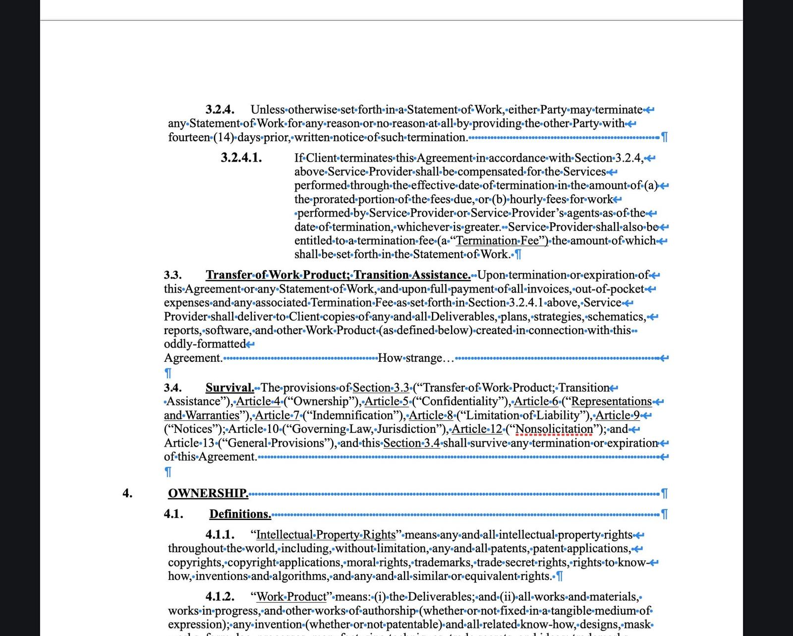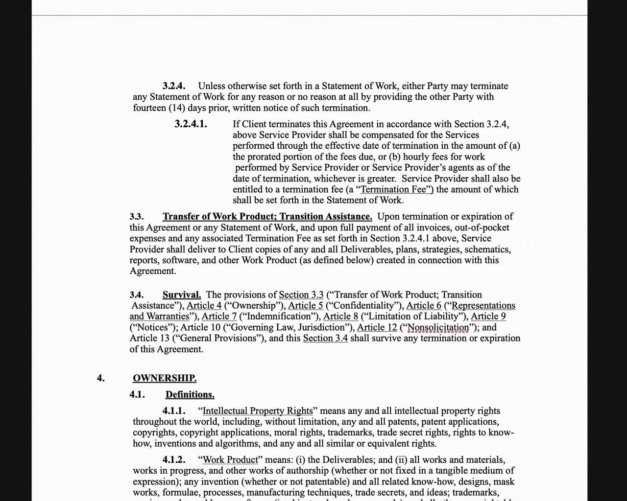 - Services Agreement: This document goes hand in hand with our Statement of Work and defines important business and legal items such as Intellectual Property, Termination, and Confidentiality